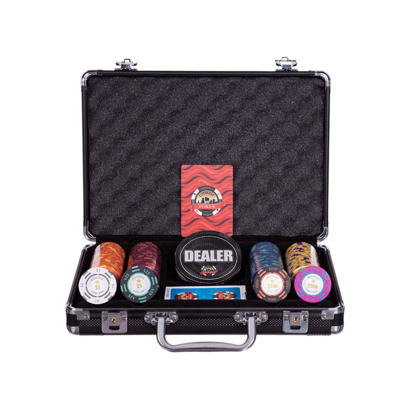 Você está prestes a adquirir o que há de mais moderno e elaborado em fichas para Poker. Lindas e fabricadas em Clay profissional, as mesmas utilizadas nos maiores cassinos e torneios do mundo. Fichas de alta qualidade 14gms Modelo Monte Carlo Poker Room. Este conjunto contem: 01 Maleta para 200 fichas 200 Fichas de 14gms Modelo Monte Carlo Poker Rom 01 Botão Dealer Especial - 01 Baralho Texas Holdem 100% Plástico Cidade do Poker